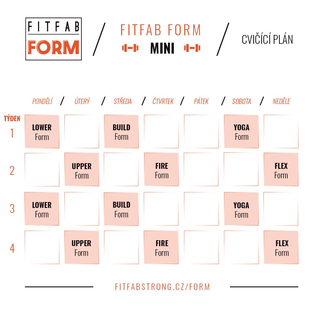 Lekce programu Form obsahují oblíbená cvičení, kterými jsou silový lower a upper body trénink s činkami, vysoce intenzivní kardio, HIIT, lekce mobility či jógy. Lekce trvají okolo 30 minut. Vhodný je program Form pro ty, kteří chtějí začít s náročnějšími tréninky, zachovat variabilitu a maximální efekt.