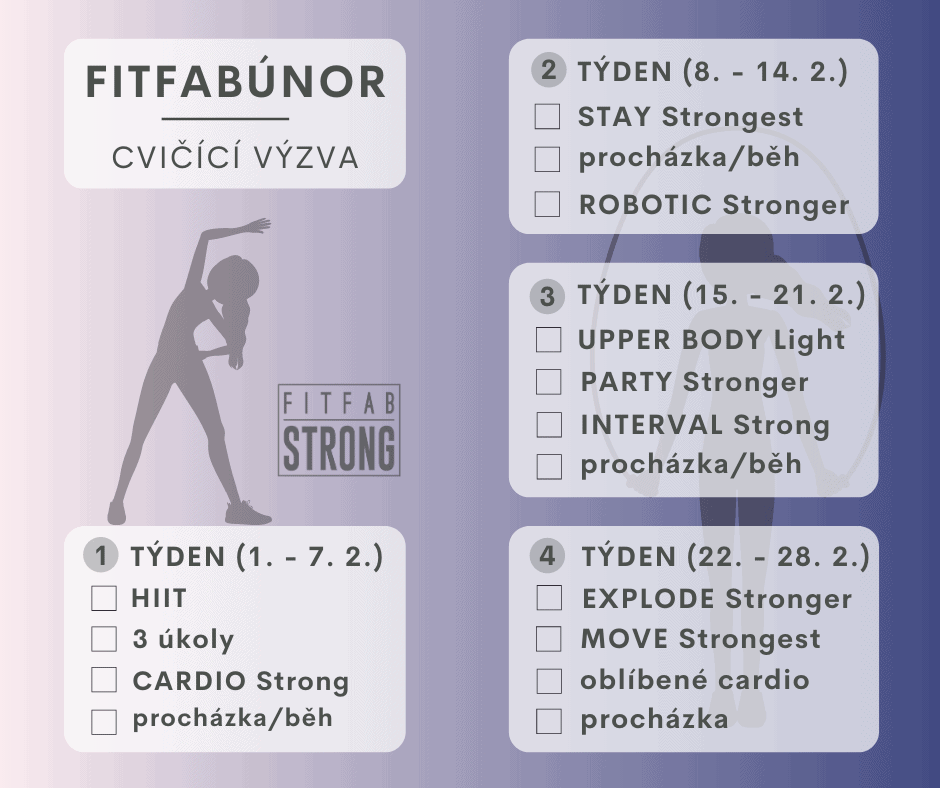 Ve výzvě vás budeme podporovat jak na našem Instagramu @fitfabstrong.cz, tak na naší uzavřené FB skupině Fitfab Strong parta.