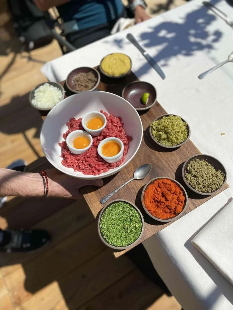 Z menu doporučuji mix bruschett (nejlepší je ta s burratou) a tatarák nebo steak z tuňáka.