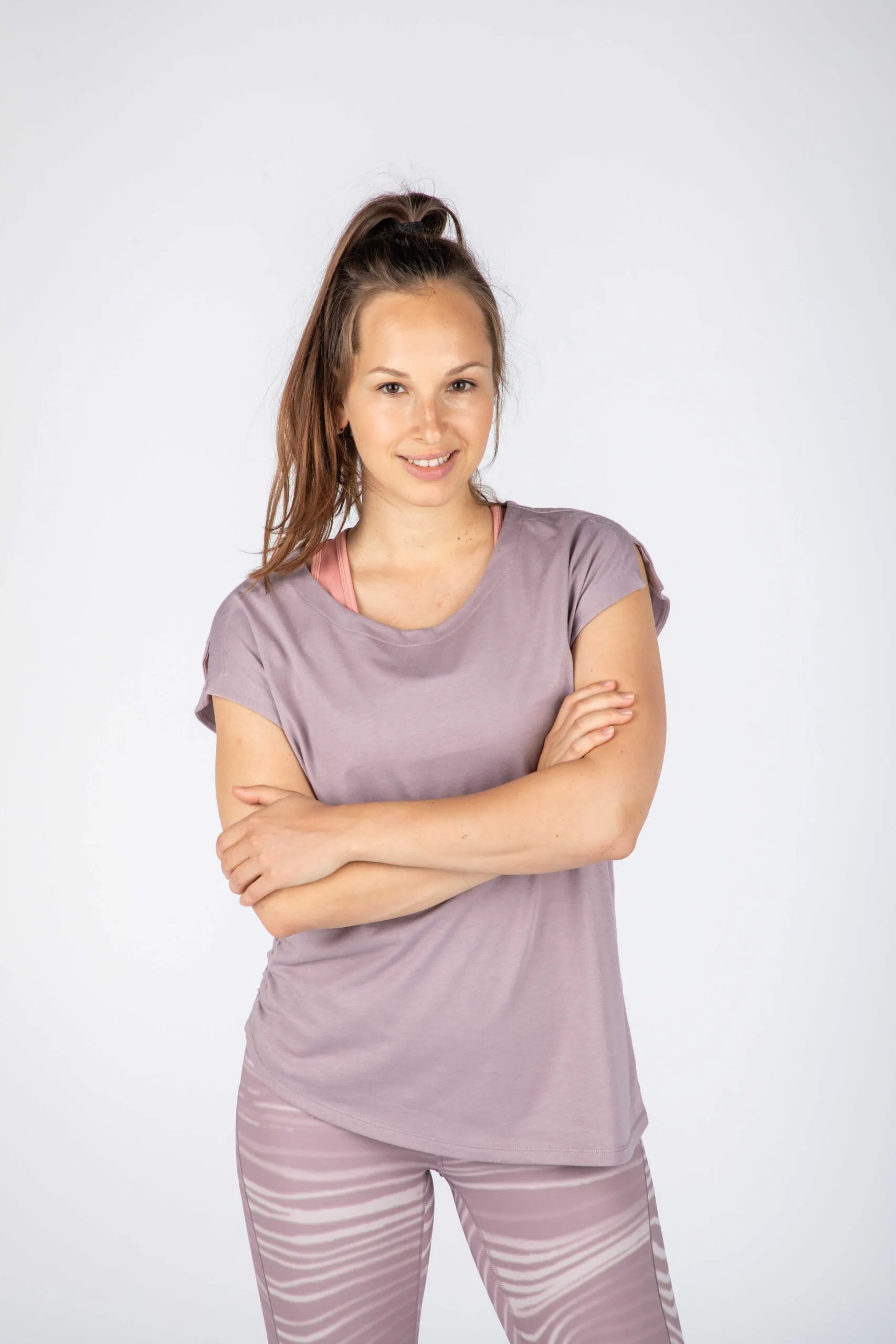 Levandulové volné delší triko se spadeným ramenem >> ZDE!