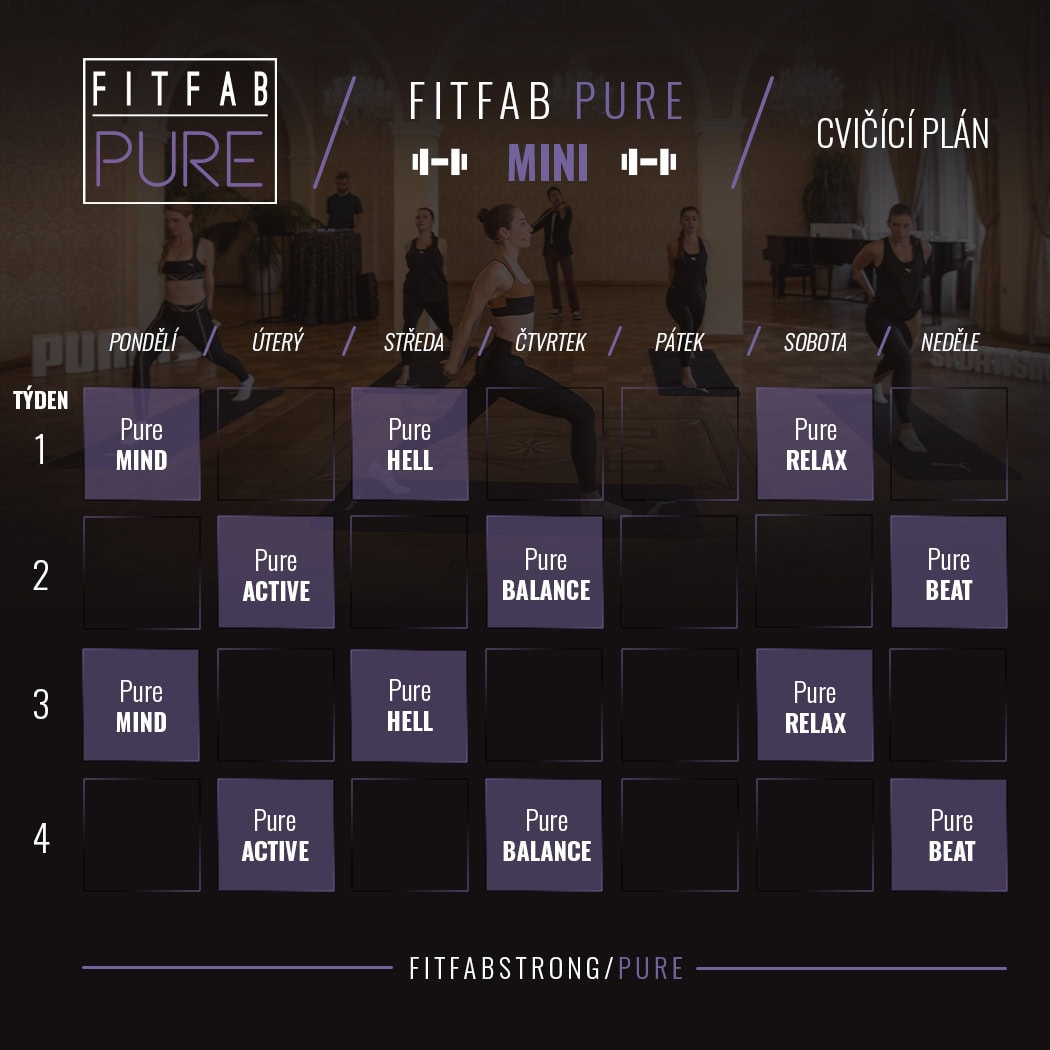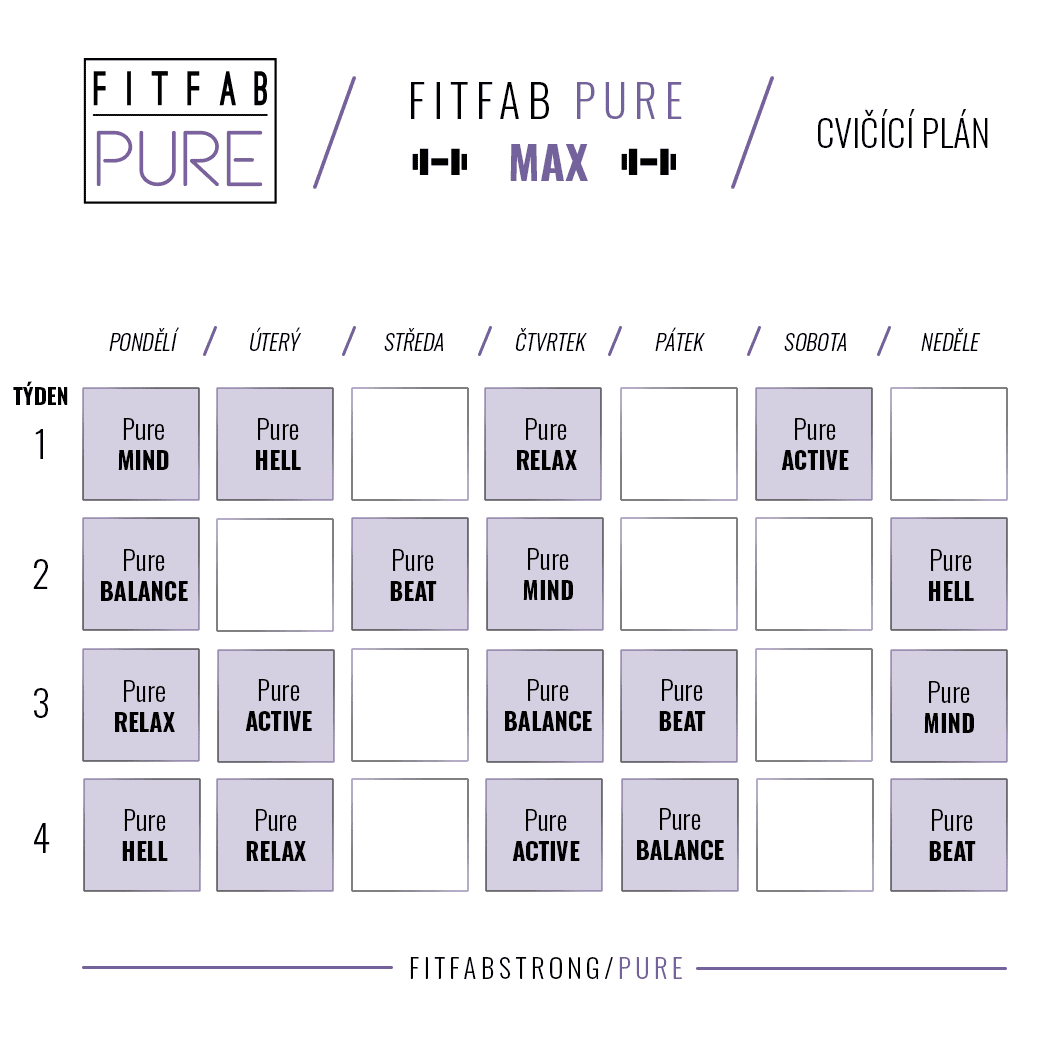 Pokud jste milovníkem jógy, zamilujete si i program FITFAB Pure. Každá ze šesti lekcí vás provede jiným typem jógy, a tak si můžete vybrat cvičení podle toho, v jakém rozpoložení se zrovna nacházíte. Dynamická vinyasa, klidná jóga před spaním či taneční kroky spojené s jógovými prvky, od 15 až do 45 minut, to vše nabízí program FITFAB Pure.
