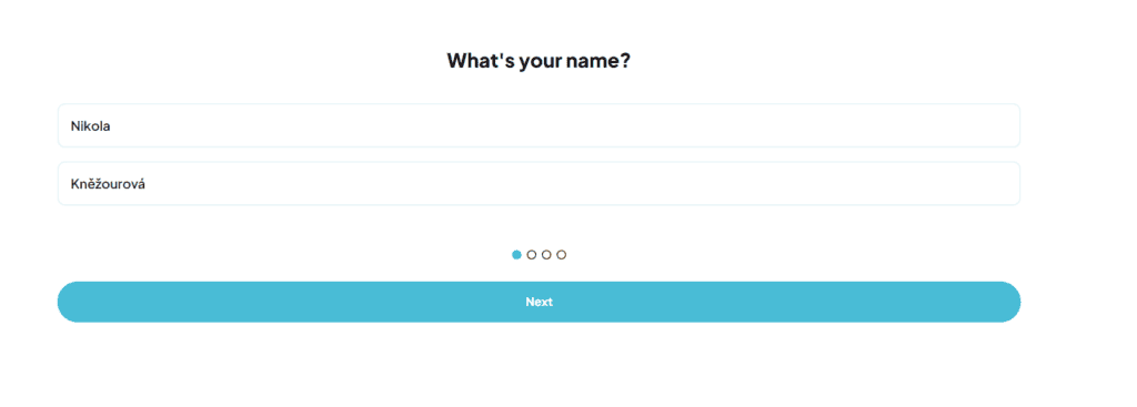 - Vyplňte křestní jméno a příjmení a klikněte na Next.