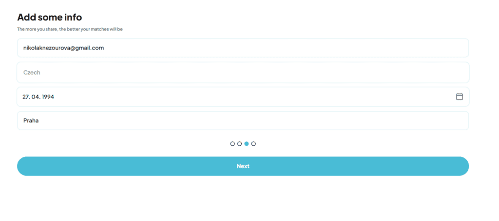 - V dalším kroku doplňte svůj e-mail, preferovaný jazyk (čeština je hned druhou volbou), narozeniny a město bydliště.