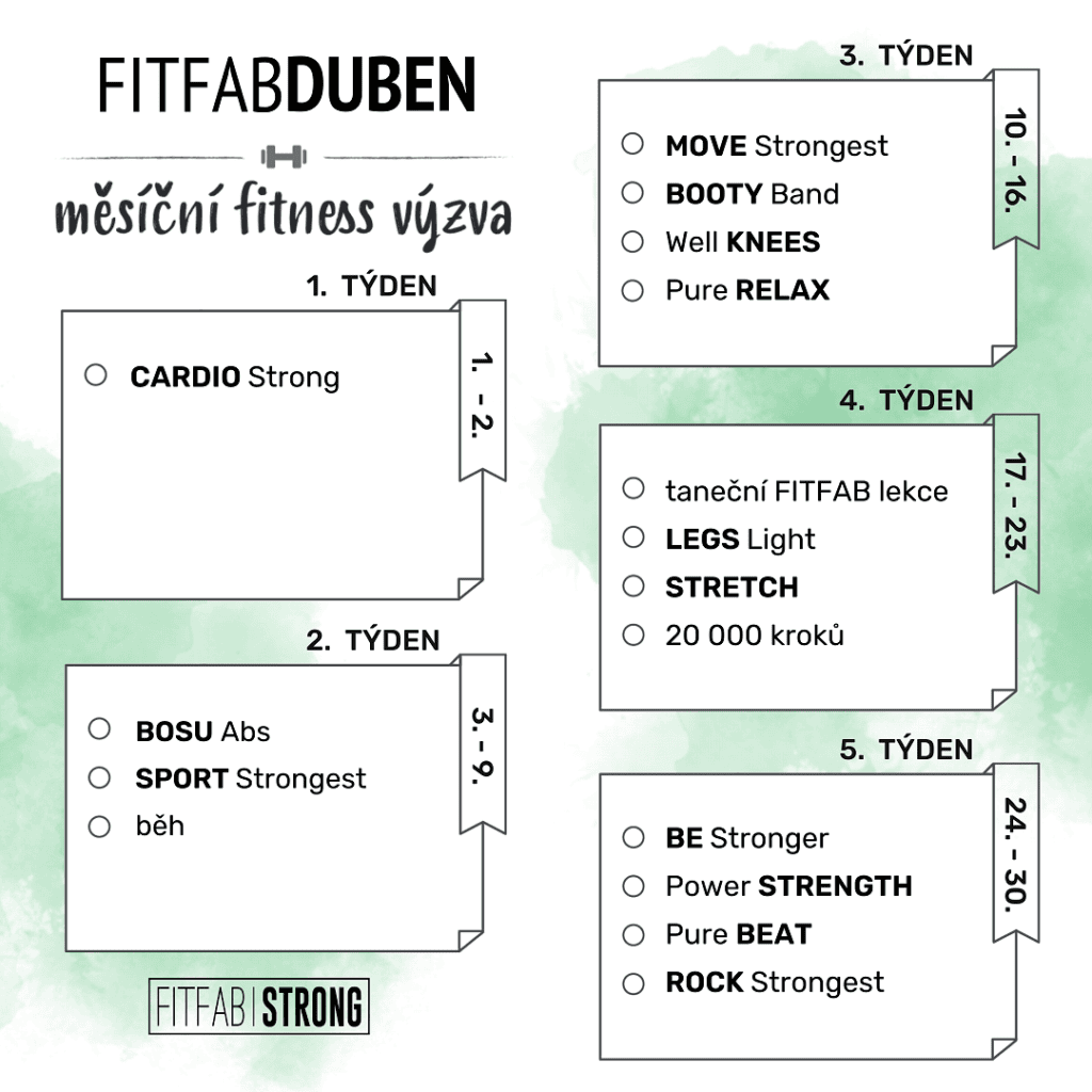 - Jak být vidět? Označujte na Instagramu či Facebooku hashtag #fitfabduben – budeme vaše pokroky sdílet ve stories!