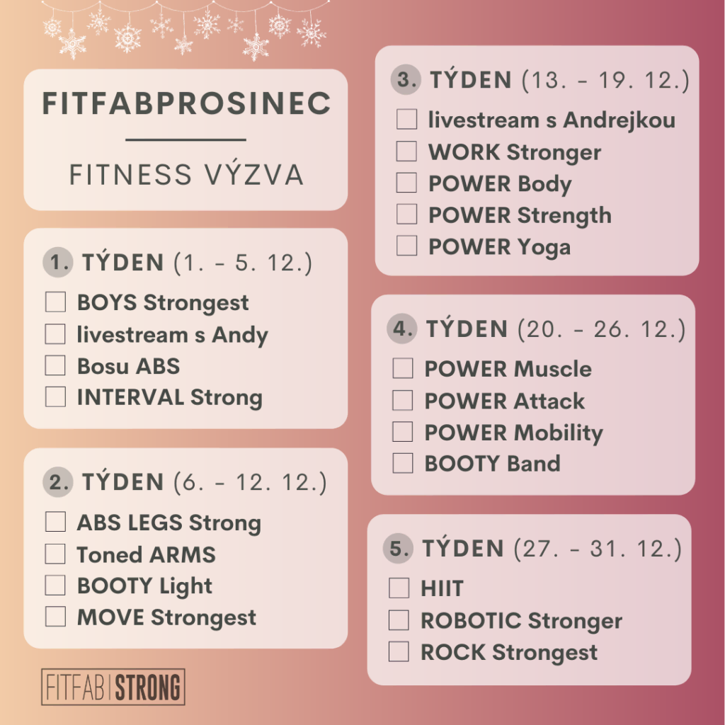 - Jak být vidět? Označujte na Instagramu hashtag #FITFABPROSINEC – budeme vaše pokroky sdílet!