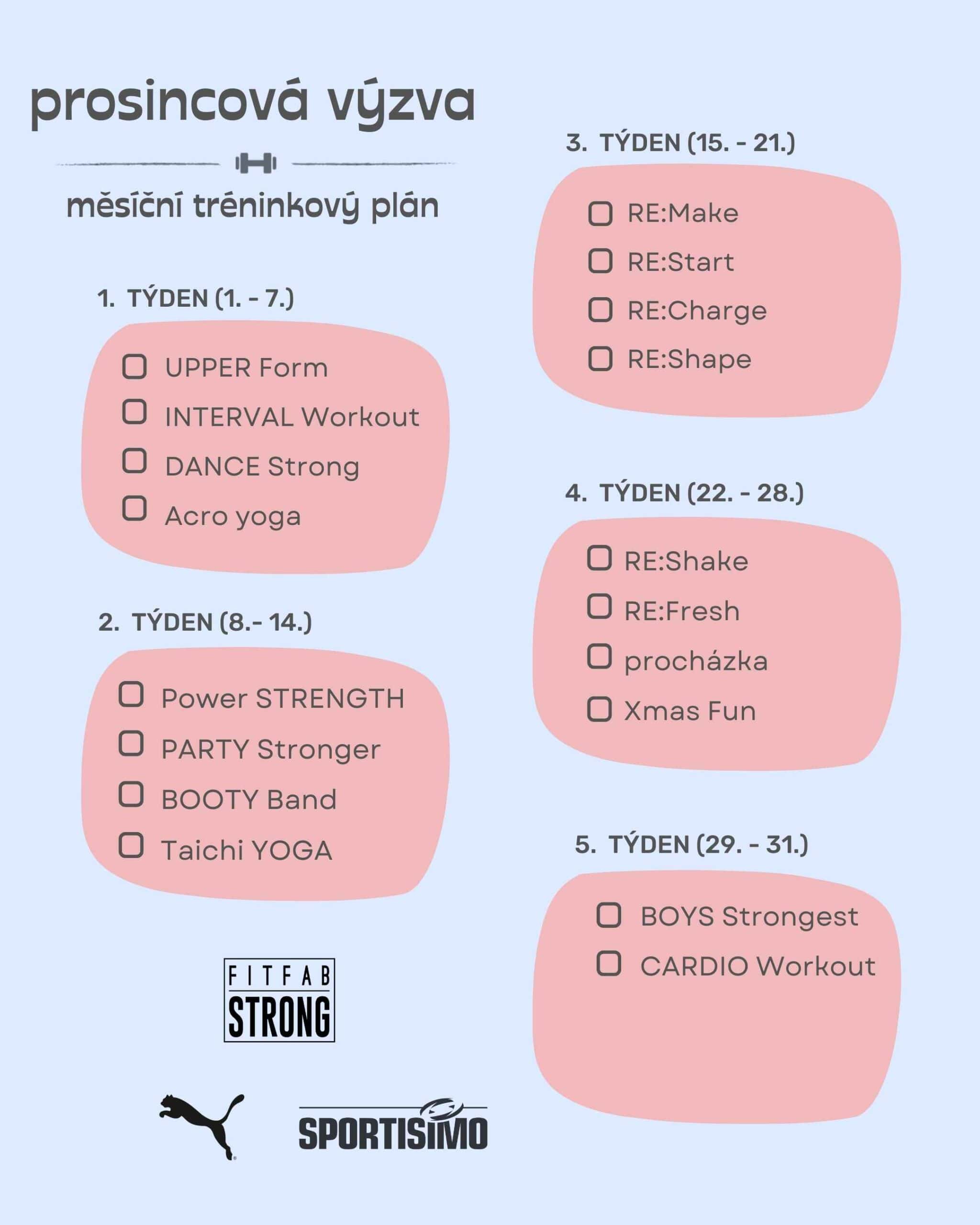 Čekají vás 3–4 tréninky týdně, díky kterým rozhýbete tělo, zlepšíte náladu a zakončíte rok s dobrým pocitem. 💪🏼